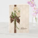 Cream coloured roses with pearls and brown ribbon on elegant damask background for 55th wedding anniversary for couple.