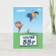 Here's a funny cartoon birthday card for someone who's about to get the kick in the butt that comes with having a 55th birthday. Ouch!