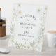 Pretty Boho daisies create a modern white floral frame on this birthday welcome sign. All text is editable.