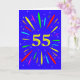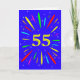 An explosive 55th birthday card! What a wonderful way to send birthday greetings. The number 55 in bright yellow with an explosion of bright colours and stars.