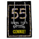 This floral, botany-inspired birthday-themed gift bag design features the message “Happy 55th Birthday,” and a customisable recipient name. The large number “55” and the border both feature flower icons. A fun giftbag like this might be used when giving a present or gift in honour of somebody’s fifty-fifth birthday. [~Z0000653]