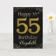 Happy Birthday with simulated golden glitter number 55 set on a solid background color and framed by faux diamonds and rhinestones. Happy birthday and recipients name in off-white font. Personalize with name or message.