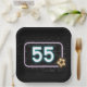 Glowing neon marquee sign with a star on a dark brick city wall for 55th birthday party
