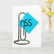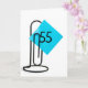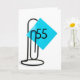 An aqua reminder note on a giant black paper clip on white for a 55th birthday.