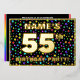 The front of this fun and upbeat fifty-fifth birthday party foil invitation card design features a custom name, a large number “55th”, the message “BIRTHDAY PARTY!”, and a border. The background of the front has an exciting, colourful starfield pattern. The back features personalised details about the event, such as the date, time, place, and any other information that may be useful. Customisable invitations like these might be a fun way to invite attendees to a birthday gathering being held in celebration of somebody’s 55th birthday. [~Z0000600]