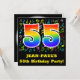 The front of this fun, vibrant, and exciting birthday party invitation design features a large number "55" having a rainbow spectrum gradient inspired pattern. It also features a customisable name and the message "55th Birthday Party!". Part of the background has a fun and colourful music notes and symbols pattern. The back features customisable details about the event that the potential guests are being invited to. Vibrant, personalised birthday party invitation cards like this might be used when inviting guests to attend a celebration being held to celebrate a singer’s, a musician’s, a song composer’s, or somebody else’s fifty fifth birthday. [~Z0000427]