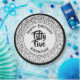 This over-the-hill design has a black and white random number pattern with a black  milestone number 55 repeated in varied sizes and angles over a white background.  There is a white circle in the centre for your text, and black and white rings around the rim.