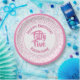 This over-the-hill design has a pink and white random number pattern with a pink milestone number 55 repeated in varied sizes and angles over a white background. There is a white circle in the centre for your text, and pink and white rings around the rim.