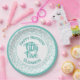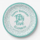 55th Cool Random Number Pattern Teal/White Paper Plate