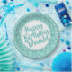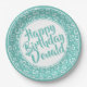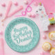 This over-the-hill design has a teal and white random number pattern with a white milestone number 55 repeated in varied sizes and angles. There is a white circle in the centre for your text and teal and white rings around the rim.