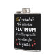 The flask itself is fine. It’s a cheap flask, obviously bought in bulk, however am prepared to overlook that. Given that it is a personalized item, I would have liked to have seen gift boxing instead of the generic packaging. Terrible printing, and/or quality. It’s a cheap, tacky vinyl. It is not cut straight and is also applied in a way that it is overhanging the bottom, causing the glue to catch on items and it will eventually roll and tear, damaging the wrap.