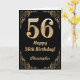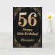 56th Birthday Black and Gold Glitter Frame Card