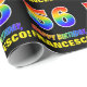 This fun, colourful, and cheerful birthday-themed wrapping paper design features a large number "56" and the message "HAPPY BIRTHDAY,", both coloured with a rainbow spectrum gradient inspired pattern, along with a bold yellow custom recipient name. The background is coloured black. Fun wrapping paper like this might be used when giving a gift or present in honour of somebody’s fifty sixth birthday. [~Z0000475]