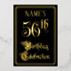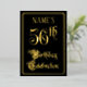 The front of this elegant, opulent, foil fifty-sixth birthday celebration/party invitation design features the message “56th Birthday Celebration” in ornate script-style text. It also features an editable name. The background of the front is coloured black by default (although it can be customised to a different colour). The back features personalised details about the event, such as the date, time, location, and any other relevant information. Luxurious, fancy, editable invitations like these might be used to invite guests to a birthday celebration/party being held to honour somebody’s fifty-sixth birthday. [~Z0000589]