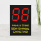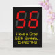 The front of this geeky and silly birthday themed greeting card design features a large number "56" with a red seven segment digital display inspired appearance, along with the message "Have a Great 56th Birthday," and a personalised name, on a black coloured background. The inside features a customisable birthday greeting message, or could perhaps be cleared and left blank if a message is to be written by hand instead. A customisable birthday card like this might be a fun way to send a message in celebration of somebody’s fifty sixth birthday. [~Z0000386]