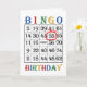 57th Birthday card. Say Happy Birthday to a bingo player with a bingo card. The age is circled in red. A bingo crazy player will get a huge kick out of this card! Copyright Norma Cornes.