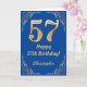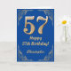 57th Birthday Blue and Gold Glitter Frame Card