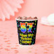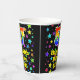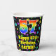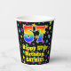 This colourful and fun birthday themed paper cup design features a large number “57” having a rainbow spectrum gradient inspired pattern. It also features the message “Happy 57th Birthday,”, and a personalised name. The background features a multicolored star field inspired pattern. Vibrant, colourful paper cups like this might be fun to have at a birthday party/celebration being held to celebrate somebody’s 57th birthday. [~Z0000540]