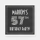 This 1920s-1930s style inspired fifty-seventh birthday celebration/party paper napkin design features a customisable name, a fancy art deco style inspired number “57th”, the message “BIRTHDAY PARTY!”, and a multi-line border. It has a black-coloured background by default, but it can be customised to a different colour, if desired. Luxurious birthday themed paper napkins like these might be used at a party celebrating somebody’s fifty seventh birthday. [~Z0000616]