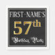 This luxurious and elegant birthday themed paper napkin design features a custom name and the message “57th Birthday Party”. The large number “57th” has a faux/imitation gold-inspired coloring pattern, and the words “Birthday Party” are in ornate script-style text. The background is colored black by default (although it can be customized). Fancy, opulent paper napkins like this might be used at a birthday party being held to honor somebody’s 57th birthday. [~Z0000565]