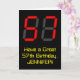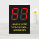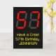 The front of this geeky and nerdy birthday themed greeting card design features a large number "57" with a red seven segment digital display inspired appearance, along with the message "Have a Great 57th Birthday," and a customisable name, on a black coloured background. The inside features a custom birthday greeting message, or could perhaps be cleared and left blank if a message is to be written by hand instead. A personalised birthday card like this might be a fun way to send birthday wishes to somebody who is celebrating their fifty seventh birthday. [~Z0000386]