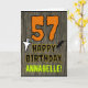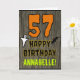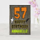 The front of this spooky and scary Halloween birthday themed greeting card design features a large number "57". It also features the message "HAPPY BIRTHDAY,", plus a personalized name. There are also depictions of a bat and a ghost on the front. The inside features a custom birthday greeting message, or could perhaps be cleared and left blank if a message is to be written by hand instead. A customizable birthday card like this might be a fun way to send birthday wishes to somebody who is celebrating their fifty seventh birthday and who was also born on Halloween (October 31st). [~Z0000410]