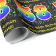 This fun, colourful, and vibrant birthday wrapping paper design features a large number "58" with a rainbow spectrum gradient inspired pattern, along with the message "Happy 58th Birthday,", and a customisable name. Part of the background has a pattern of various music notes and symbols having a variety of colours and sizes. Birthday themed wrapping paper like this might be a fun way to wrap a gift or present being given to celebrate a musician’s, a singer’s, a music composer’s, or somebody else’s fifty eighth birthday. [~Z0000422]