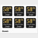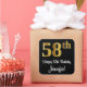 This elegant, luxurious, and sophisticated birthday themed sticker design features a large ordinal number “58th” having an imitation/faux gold-like gradient pattern, along with the birthday greeting message “Happy 58th Birthday,” and a customisable name in a script-style font. The background is coloured black. Stylish birthday themed stickers like this may be used when wrapping a gift or present being given to somebody who is celebrating their 58th birthday, or perhaps might be handed out to the attendees at a birthday party. [~Z0000517]