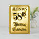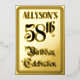 The front of this ornate fifty-eighth birthday celebration/party foil announcement card design features the message “58th Birthday Celebration” in elaborate script-style text. It also has a custom name. The back features personalised details about the event, such as the date, time, venue/location, and any other information that may be important. Opulent, luxurious, customisable invitations like these might be used to invite guests to a birthday party/celebration being held to honour somebody’s 58th birthday. [~Z0000596]