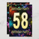 Add a name to customise this unique party invitation. 58th birthday party invitation with fireworks and bubbles. Add your details inside to create a perfect fun invite. Light up the sky with these glorious fireworks. An invitation to a birthday party that has style and loads of fun.