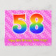 58th Birthday: Pink Stripes & Hearts, Rainbow 58 Postcard