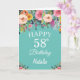 58th Birthday Watercolor Floral Flowers Teal Card with personalised name and age. For further customisation, please click the "Customise it" button and use our design tool to modify this template.