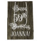 This luxurious and formal birthday themed giftbag design features the message “Happy 59th Birthday,” in ornate script style text, on a faux wood look pattern background. It also features an editable recipient name. A gift bag like this might be used when wrapping gifts being given to somebody in celebration of their 59th birthday. [~Z0000558]