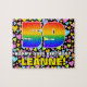 This bold and exciting birthday jigsaw puzzle design features a large number “59” with a multicolored rainbow spectrum inspired gradient pattern, along with the message “HAPPY 59th BIRTHDAY,”, and a personalised recipient name. The background features an upbeat pattern of loving hearts of various colours and sizes. A colourful, customised birthday puzzle like this might be given in celebration of somebody’s fifty-ninth birthday. [~Z0000611]