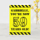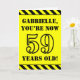 The front of this bold and fun birthday themed greeting card design features a personalized name and the message "YOU’RE NOW 59 YEARS OLD!" in black stencil style text on a yellow colored background. There is also an eye-catching black and yellow stripes pattern at the top and bottom edges of the front. The inside features a customizable birthday greeting message, or could perhaps be cleared and left blank if a message is to be written by hand instead. A customizable birthday card like this might be a fun way to send birthday wishes to somebody who is celebrating their fifty ninth birthday. [~Z0000413]