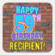 This fun birthday square sticker design features the message “HAPPY 59TH BIRTHDAY,” having a vibrant, colourful, graffiti and urban street art inspired appearance, along with a personalised recipient name. The background features a brick wall inspired pattern. Fun, personalised stickers like this might be given as a birthday gift, or used while wrapping gifts, or perhaps used as a birthday party decoration when celebrating somebody’s fifty ninth birthday. [~Z0000535]