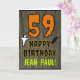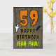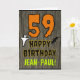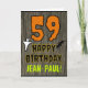 The front of this spooky and scary Halloween birthday themed greeting card design features a large number "59", along with the message "HAPPY BIRTHDAY,", and a customizable name. There are also depictions of a ghost and a bat on the front. The inside features a custom birthday greeting message, or could perhaps be cleared and left blank if a message is to be written by hand instead. A personalized birthday card like this might be a fun way to send a message in celebration of somebody’s fifty ninth birthday that also falls on Halloween (October 31st). [~Z0000410]
