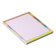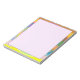 This 5.5" x 6" Notepad has 40 pages,  features a multi-colour design on the edges with a light purple writing area.