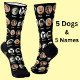 5 Dogs, 5 Names, Dog Photo - Personalised Black Socks