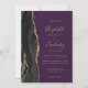 5-Photo Black Gold Agate Purple Wedding Invitation