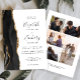 The left-hand edge of this elegant modern wedding invitation features a black watercolor agate border trimmed with faux gold glitter. The customisable text combines charcoal grey handwriting, copperplate and italic fonts on a white background. The reverse side provides spaces for 5 photos (3 horizontal 1 square and 1 vertical) and room for your wedding website URL or other brief message.