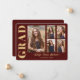 5 Photo Grad Collage Modern Script Red and Gold Announcement
