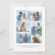 The left-hand edge of this elegant modern wedding invitation features a navy blue watercolor agate border trimmed with faux rose gold glitter. The customisable text combines charcoal grey handwriting, copperplate and italic fonts on a white background. The reverse side provides spaces for 5 photos (3 horizontal, 1 square and 1 vertical) and room for your wedding website URL or other brief message.
