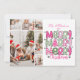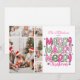 Celebrate the season in cheerful style with this vibrant photo holiday card featuring a stacked “Merry Merry Merry Christmas” design in festive pinks and greens. Playful patterns like plaid, polka dots, and stripes add a charming, modern twist. The top section includes space for two favourite family photos, while the customisable text allows you to add your family name and the year for a personal touch. A sweet way to send warm wishes and memories to friends and loved ones.
