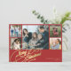 Elegant stylish Merry Christmas faux gold classic calligraphy script five family photos red holiday card with your custom personalised text on both sides. +++++++++ PLEASE NOTE that the background colour is editable. You can change it after selecting CUSTOMIZE option down below the PERSONALIZE IT menu. If you don't feel at ease changing it, please ask Zazzle Live Design Service or the designer for help.