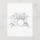 5 Piece Drum Kit: Black & White Drawing: Postcard