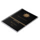 Professional gold and black notebook. Design features 5 brushed gold stars on the front and the ability to make it your own. Add your logo or photo, name, year, and favourite quote, saying, or content description. Perfect for entrepreneurs, students, teachers, or busy Moms... Click the "customise further" link and use our design tool to modify this template.