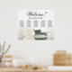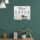 This exquisite wedding seating chart accommodates 50 guests across five tables, with 10 seats per table. The design is a beautiful blend of class, elegance, and romance, showcasing a single long-stemmed ivory, white, or cream coloured rose gracefully reflecting in a tranquil pool of water. The title, rendered in tasteful script calligraphy, warmly invites guests with "Welcome! Please find your table," leaving ample space below for the couple's names and wedding date. This seating chart serves as a charming and practical way to welcome guests and help them locate their assigned seats at the wedding reception, exuding an air of grace and sophistication.