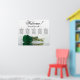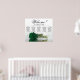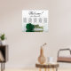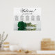 This exquisite wedding seating chart accommodates 50 guests across five tables, with 10 seats per table. The design is a beautiful blend of class, elegance, and romance, showcasing a single long-stemmed deep emerald green coloured rose gracefully reflecting in a tranquil pool of water. The title, rendered in tasteful script calligraphy, warmly invites guests with "Welcome! Please find your table," leaving ample space below for the couple's names and wedding date. This seating chart serves as a charming and practical way to welcome guests and help them locate their assigned seats at the wedding reception, exuding an air of grace and sophistication.