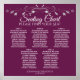 Make your wedding reception beautiful with this seating chart for 5 tables or 50 guests. Features a simple yet elegant design with pale gray text on a magenta plum or cassis purple background with a silver faux foil floral flourish or border.